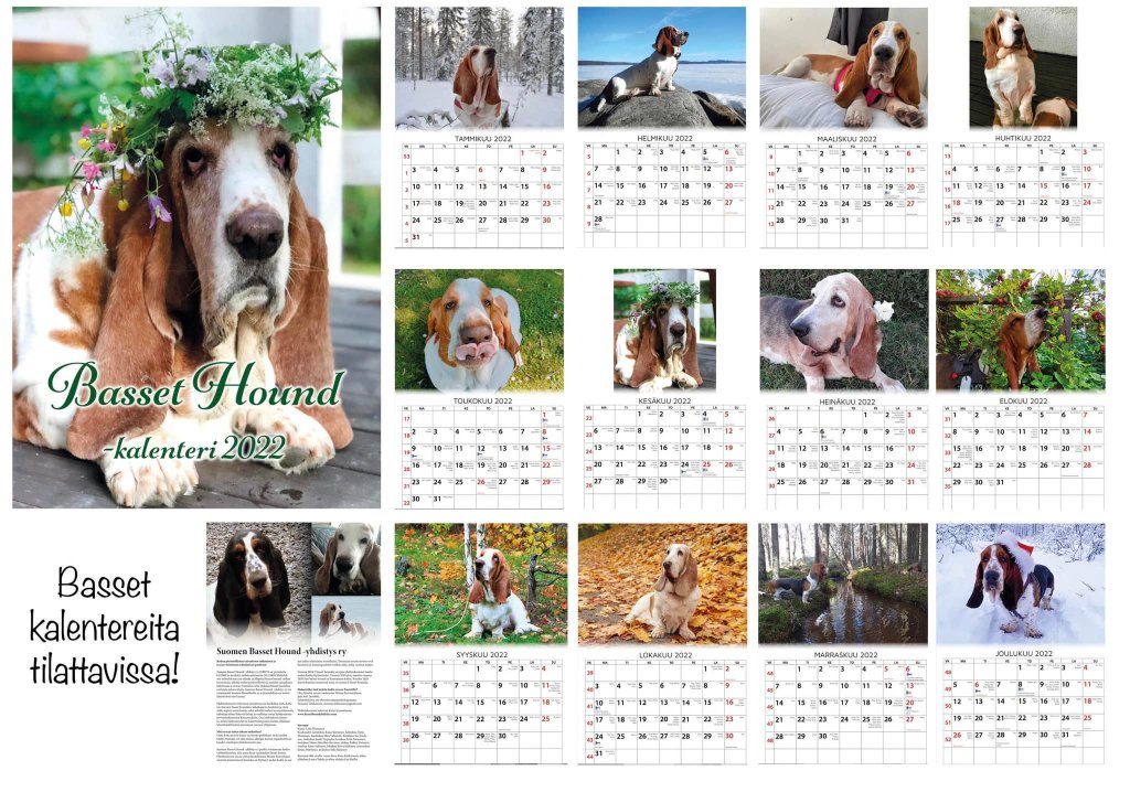 Kalenteri on Suomen Basset Hound- yhdistys ry:n koostama ja sen tuotoilla tuetaan basset houndien rescuetoimintaa.