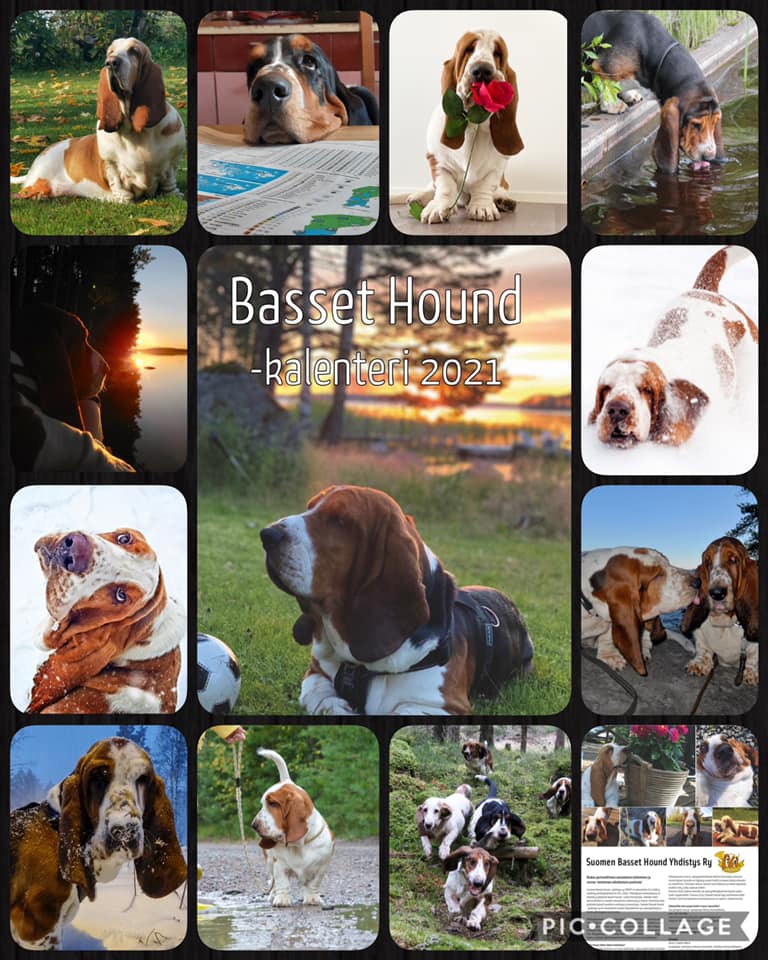 Basset hound kalenteri 2021 on painossa! Kiitos kaikille kuvia lähettäneille! Tänä vuonna kuvakilpailun voitti Camilla Walch ja kalenterin kantea komistaa Bob basset, onneksi olkoon! Kalenterin hinta on 17 euroa + postituskulut. Voit tilata omasi Anulta, ahlrooslehmusanu@gmail.com